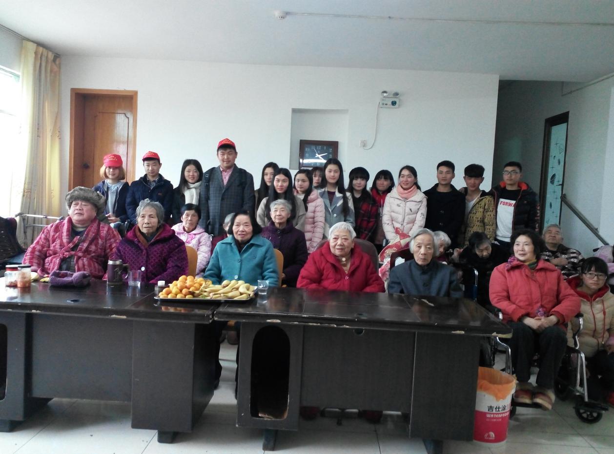 团总支书记黄镜燕、团总支学生会青年志愿者协会及组织部的青年志愿者们来到了湘潭市岳塘区福乐康老年公寓,看望老一辈社会建设者,为敬老院的老人们带去心灵上的慰藉,让他们感受到当代大学生的朝气和来自社会的温暖。