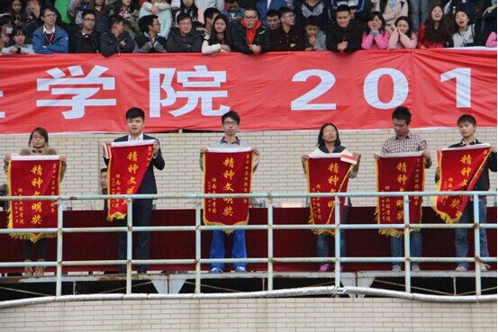 校运会期间,学院江灏副书记、学办唐星星、罗荃、尹湘鹏老师先后莅临本届校运会,她们向在比赛中出色表现的运动员表示衷心祝贺,并对本次运动会上全体运动员展现出的顽强拼搏和团结友爱的精神给予充分肯定。同时指出,要把在运动会中取得的勇于开拓、奋力拼搏、团结合作的精神,转化为推动学院科学发展促进学院建设的强大动力,以推动各项工作进一步的提升,号召全体师生以更加饱满的热情,更加高昂的斗志,更加优异的作风,迎接学院工作的新挑战,实现学院各项工作的新跨越,努力创造学院的新辉煌。当然,成功的背后也少不了你们——啦啦队。你们的一句加油、一声鼓励,为疲惫的运动员增强斗志,温暖心扉。没有鲜花,没有掌声,但你们用辛勤的汗水默默付出,为运动会增添一道亮丽的风景线。你们用热情感染了赛场上的每一个人。正如我们所牢记的口号:"纺出辉煌、织就精彩、服饰再创、装点未来”。