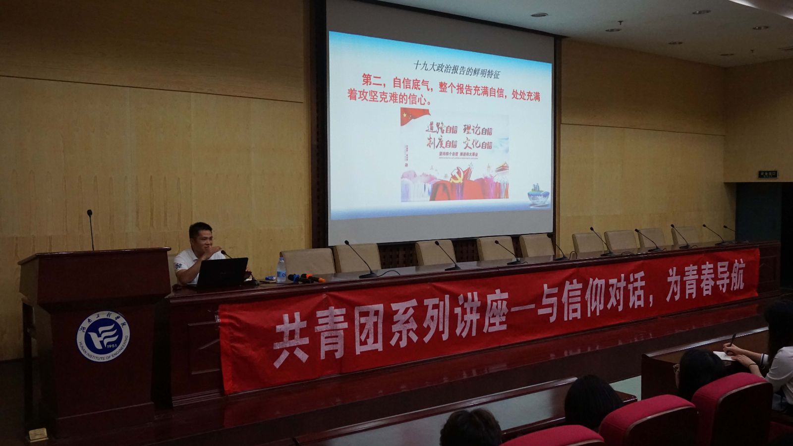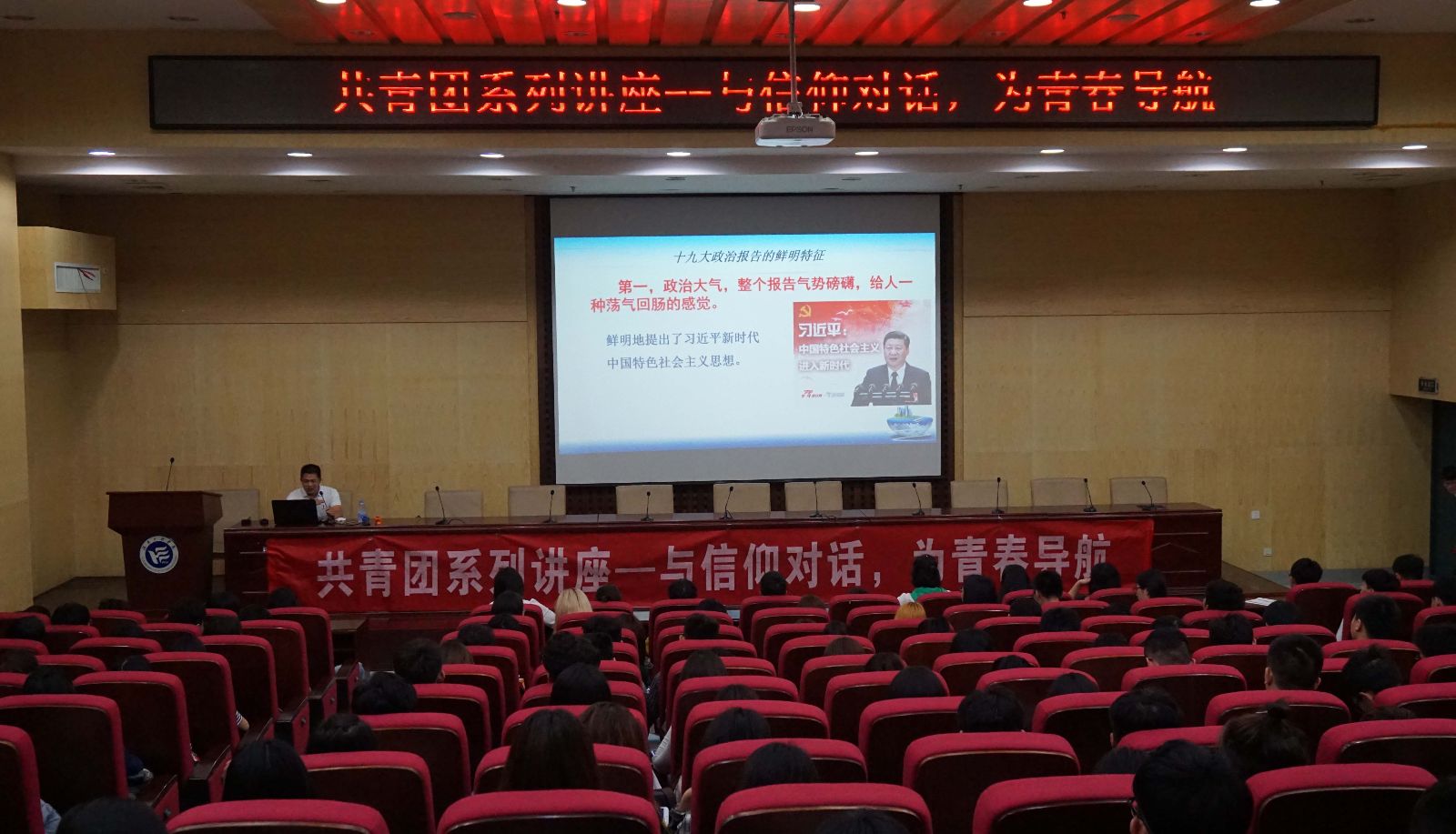 在学院党委和校团委的支持下,此次讲座有幸请到了我校思政部邓学源博士。邓博士首先从政治大气、自信底气、民众地气、政治锐气和世界朝气五个方面分析了十九大政治报告的鲜明特征,以及全球媒体进入“十九大时光”的盛景。随后,以一段《世界怎么了,我们怎么办》的视频让同学们切身感受了当今世界所存在的问题,启发同学们对新时代开启新的认识与体会。