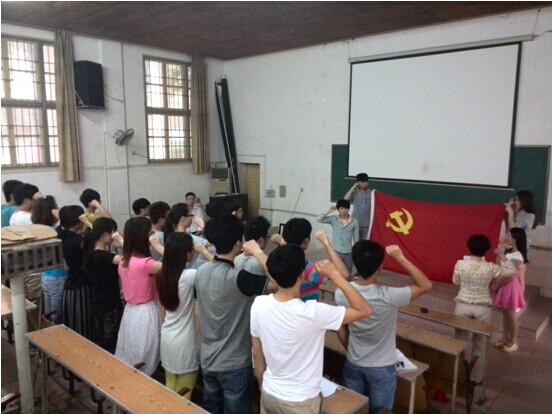 我院党支部于5月30日中午12点在电教105举办了入党宣誓大会,出席宣誓仪式的有院党总支副书记江灏、学办主任唐星星,学办老师罗荃以及学生支部支委、46位预备党员。大会由唐星星老师主持。