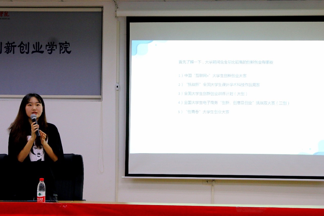 论坛上,邀请了三位在创新创业领域优秀的的高年级学生代表刘蒙丹、姜雪茹、袁晖翔,分别对:什么是创新创业;创新创业比赛是怎样的;优秀的项目申报书要如何书写,创业过程中有哪些心得进行了分享。分享结束后,在场的同学意犹未尽,根据自己的了解,对分享同学进行了提问,现场十分积极踊跃。