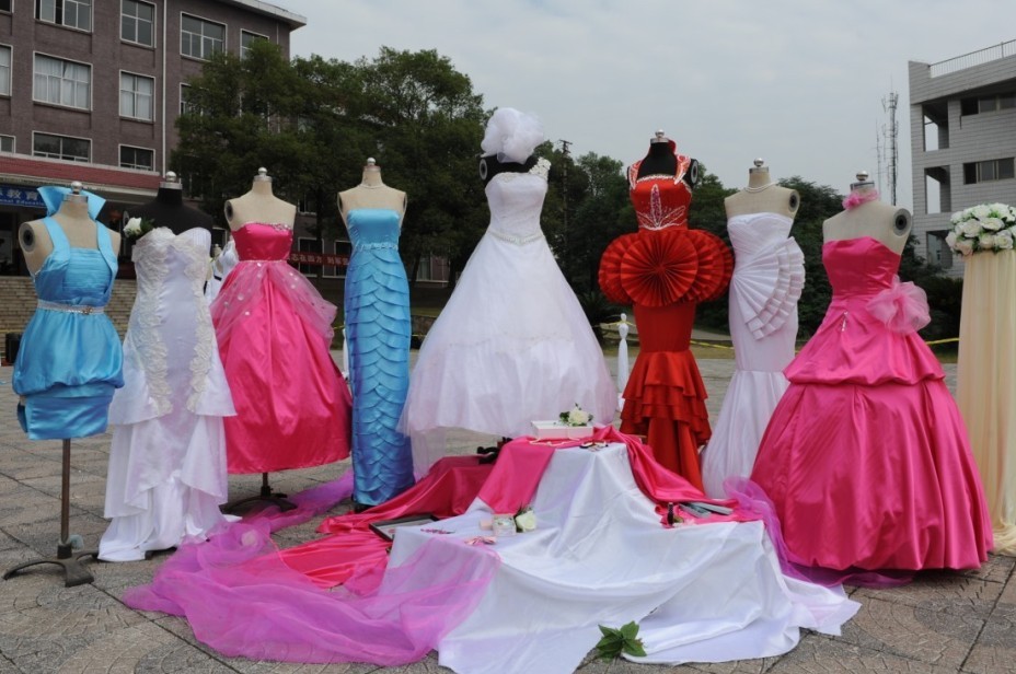 服装设计与工程0901班的同学们在各专业老师的指导下完成了整个的场地布置,光鲜亮丽、各式各样的礼服优雅华丽的展现在所有老师和同学们的眼前。受到老师、同学以及服装爱好者和摄影爱好者的好评。仅仅一个上午的时间,学海花园就聚集了大量的人流。