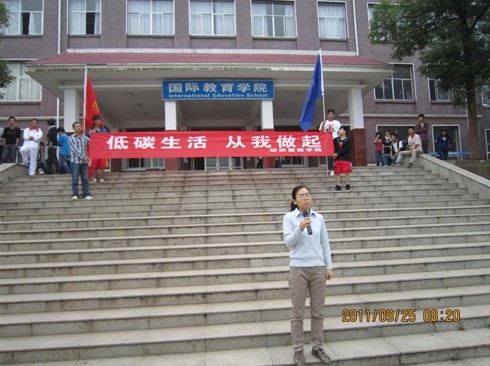 党支部和学生会联手组织了“喜迎校庆,‘低碳生活 从我做起’”的环校晨跑活动。此次活动旨在呼吁同学们身体力行,从身边小事做起,回归简朴、少电的生活方式,养成“低碳”生活习惯,努力创造绿色环保的校园环境。