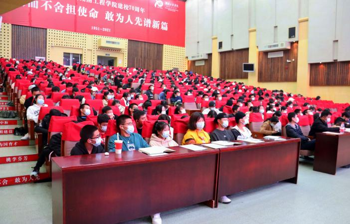 2021级新生入学教育大会于新校区图书馆一报告厅隆重举行。莅临本次大会的领导有党总支书记李爱国、院长周衡书、副院长陈晓玲、副院长何斌、党总支副书记罗荃。2021级全体班主任及学生参与会议。
