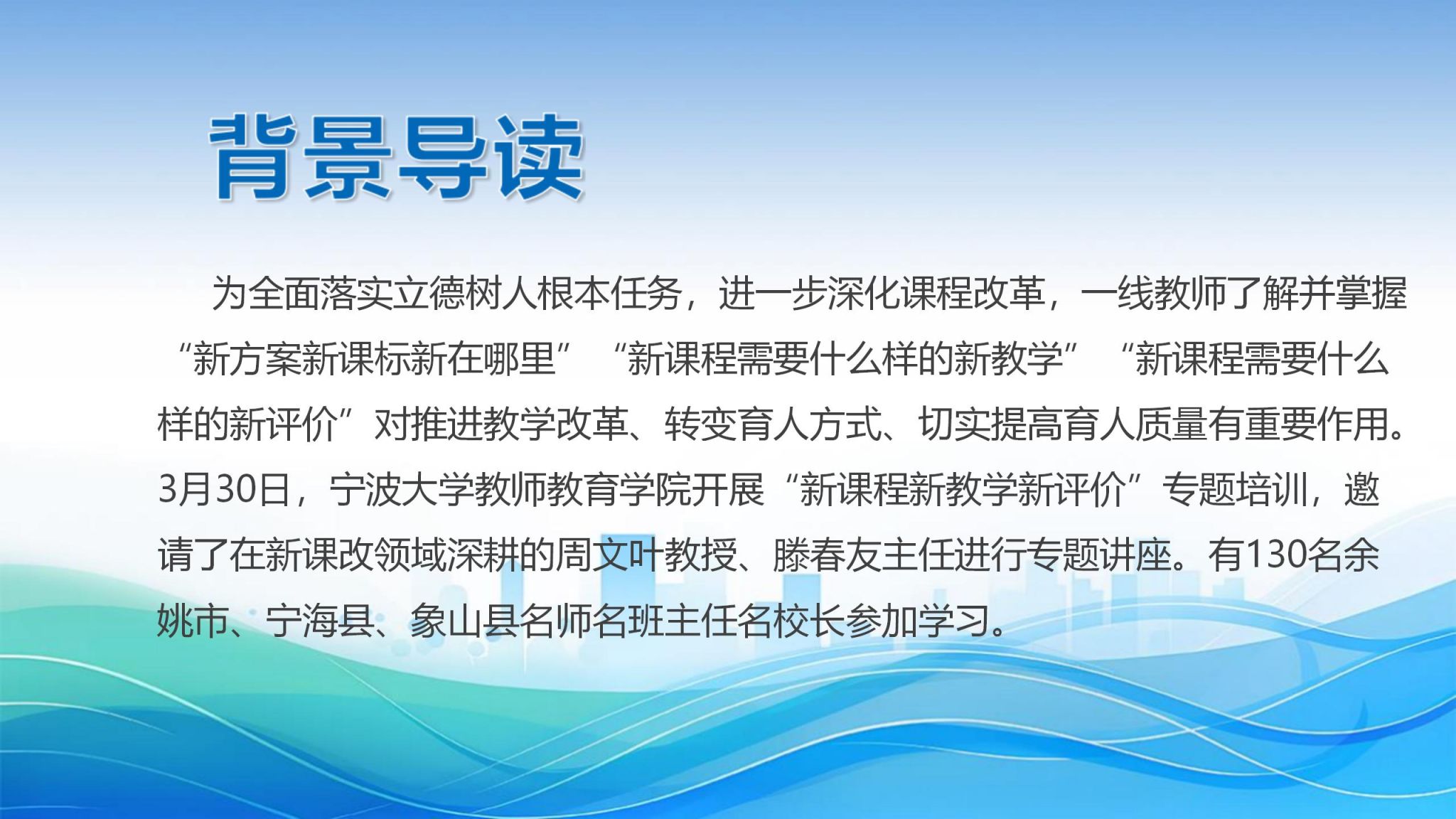 宁波大学基础教育“三名工程”研究中心简报——“新课程新教学新评价”专题培训