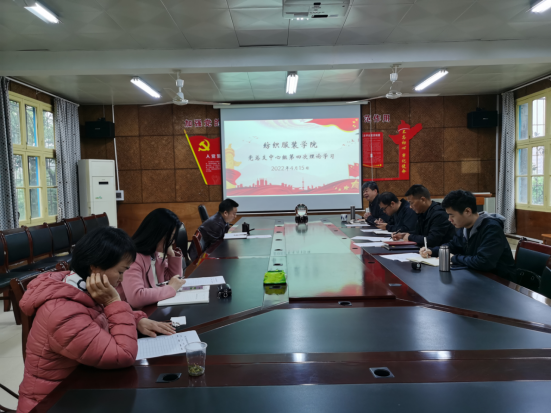 党总支理论学习中心组在电教201会议室举行2022年第四次学习会,专题学习习近平总书记在北京冬奥会、冬残奥会总结表彰大会上的重要讲话精神,并就进一步深入学习贯彻重要讲话精神作出安排部署。会议由党总支书记李爱国主持,全体党总支委员参会学习,副院长陈晓玲列席会议。