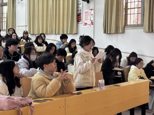 团总支书记傅静琳在电教楼105室为全院各班团支书讲授以“深入学习二十届三中全会精神,青年学子勇担新时代使命”为主题的团课。