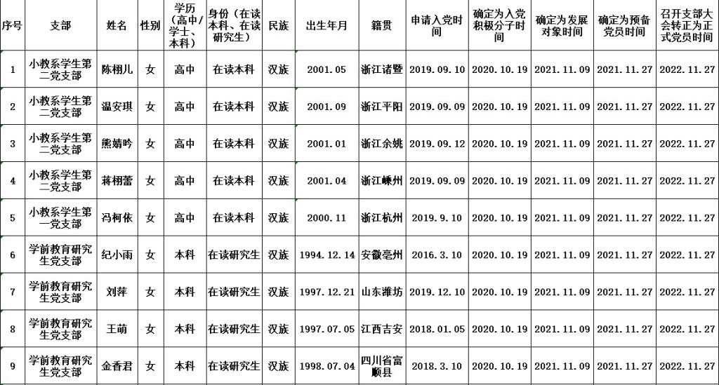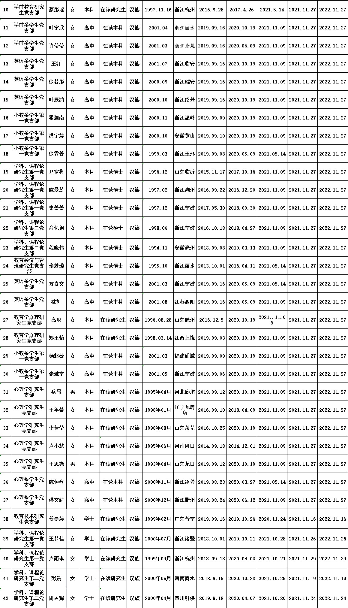 根据《中国共产党发展党员工作细则》中发展党员的文件要求,经对陈栩儿等42名同志的预备党员转正条件、转正程序等进行严格审查。20221130日,学院党委会集体审议讨论了陈栩儿等42名同志的转正问题。党委委员共7名,实到会7名。经逐个审议和表决,7名党委委员一致认为陈栩儿等42名同志已具备正式党员条件,同意批准按期转为中共正式党员,党龄从预备期满转为正式党员算起。具体名单公布如下: