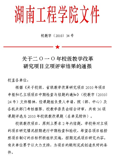 我院左双喜、张丽波老师课题在学校2010年校级教改研究项目立项。