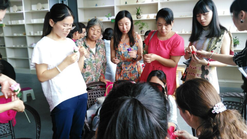 此次参会的除了我院服装专业的部分教师,还有一些创业已有一定规模的手工达人,其中湘潭市非物质文化传承人75岁的折纸艺术家贺桂华老师展示了折纸作品,手工陶艺达人教大家“玩泥巴”和香皂玫瑰花达人教大家做香皂玫瑰花。在玩的过程学习,在学习过程中享受生活,在享受生活的过程中还可以把作品变成商品,小手工也将成为大学校园的新宠。