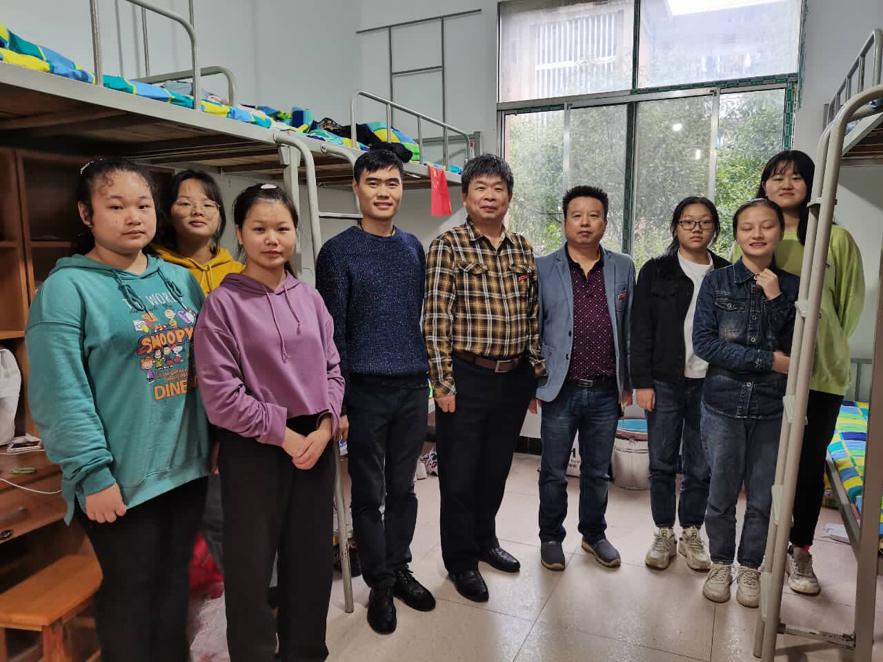 由于疫情的原因,我校采取家长不入校的措施,为关心新同学,2020年9月26日,我院党总支书记李爱国、副院长周衡书、副院陈晓玲、党总支副书记罗荃、副院长何斌以及学办老师来到宿舍关心同学的生活以及报道情况。