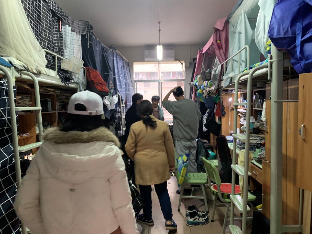 党委副书记罗荃及学生工作办公室宿管专干傅静琳,深入学海、明德及滨江学生宿舍,对宿舍安全及卫生状况进行专项检查。