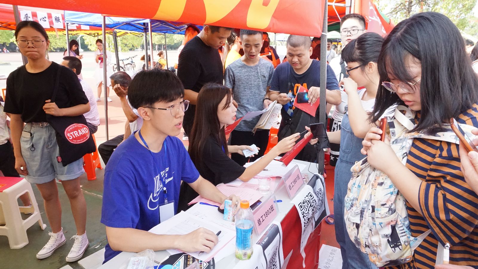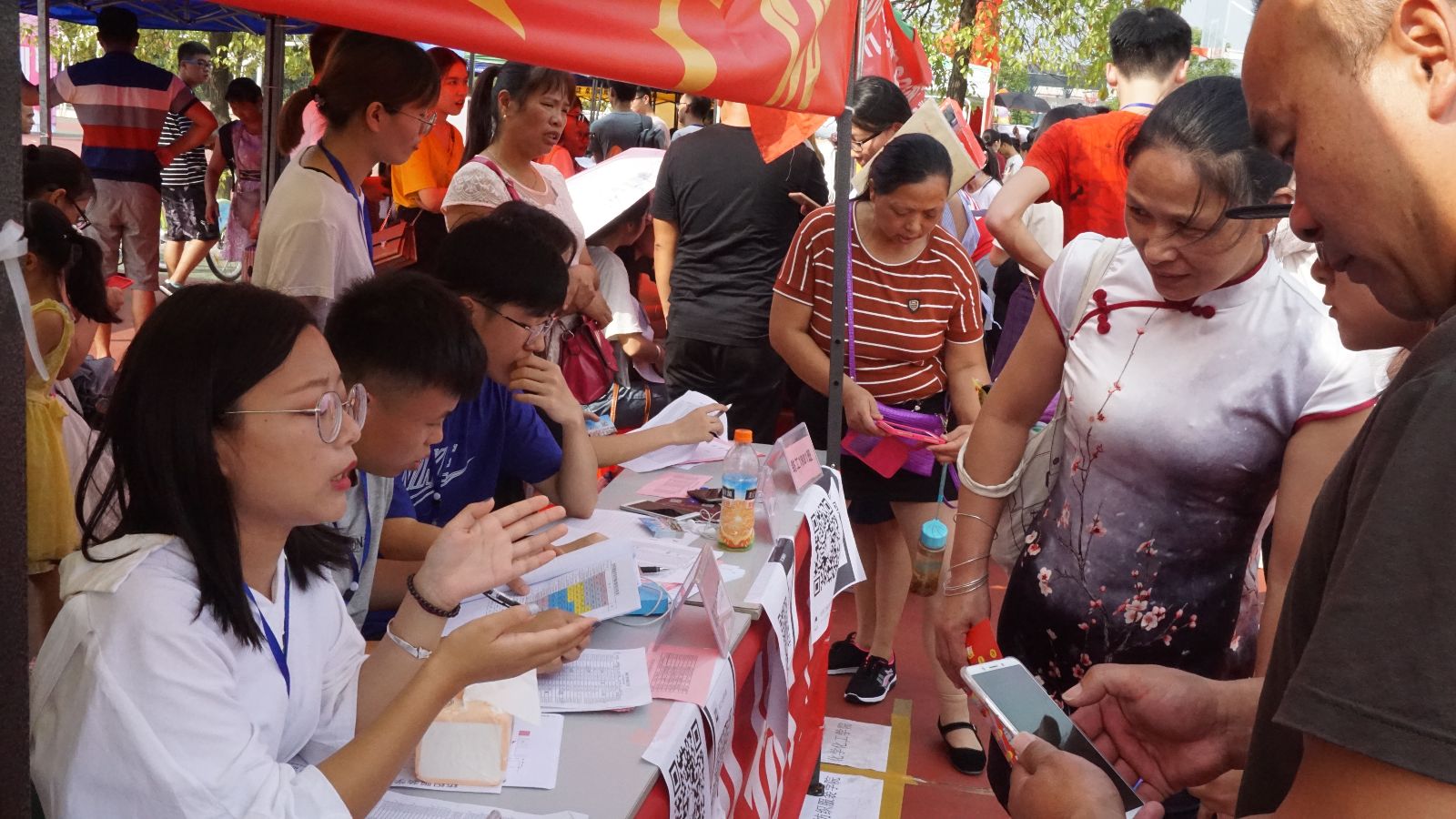 为切实做到让家长放心,让学生安心,在迎新现场,学院党支部书记江灝、副书记黄自力、学办辅导员、新生班主任分批到达报名接待点,集体督阵指挥,并在接待点前,与家长亲切交流,讲解 成人网站概况