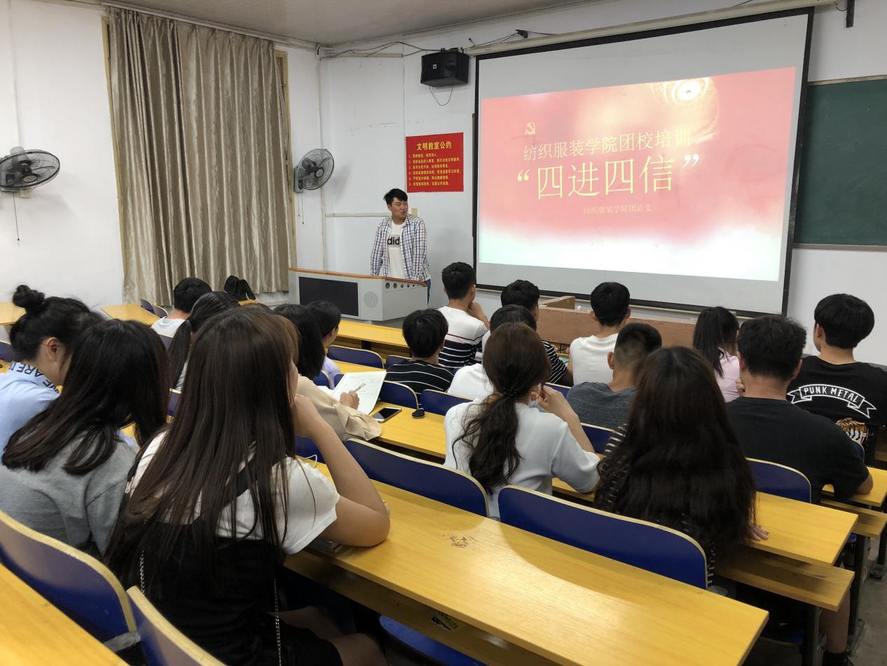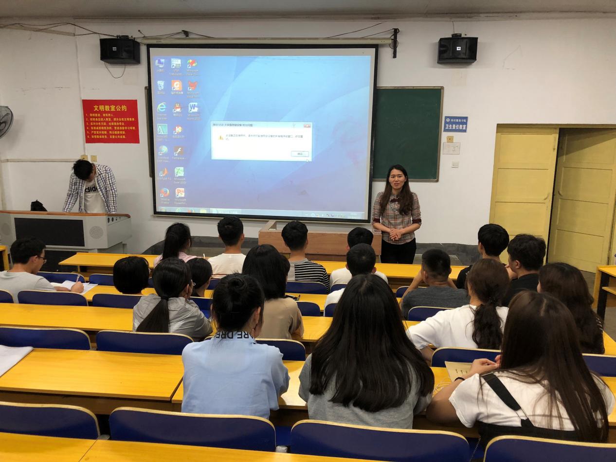 团总支书记黄镜燕在电教101为2017级团学干部进行团校培训,团总支副书记蒋云翔担任主持人。