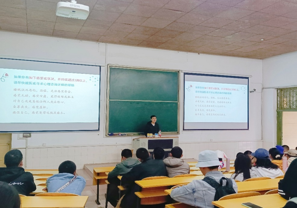 最后,对有心理问题的大学生初步疏导的问题进行了细致入微的讲解。我们的工作是“润物细无声”的,有着重要的意义,不能轻易忽视;各班寝室长和心理委员要认真负责,不能有消极态度,要关注同学们的心理问题。