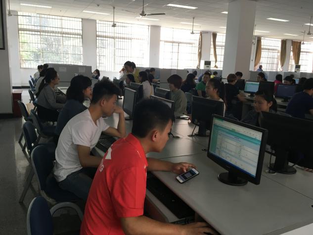 心理成长辅导室辅导员唐星星组织2014级学生于主校区图书馆图书电子阅览室,分时段、分批次的开展心理健康普查工作。