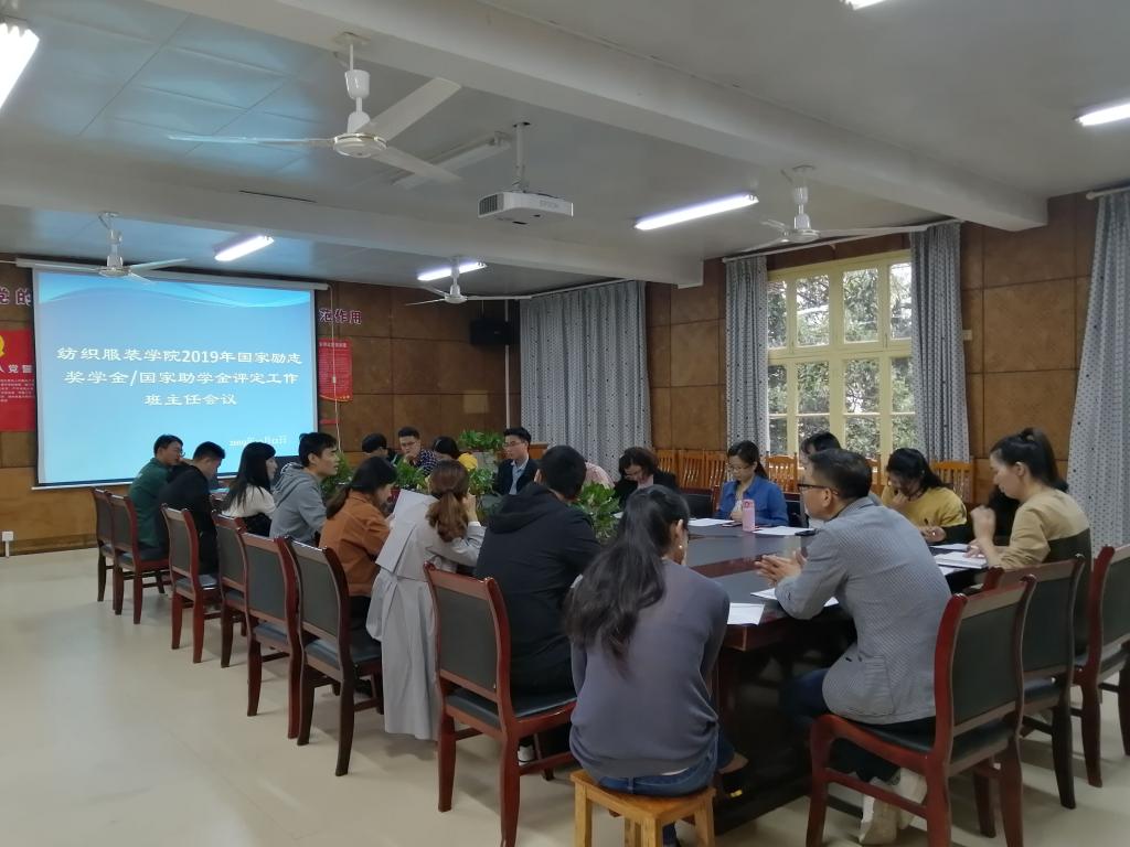 我校2018-2019学年国家奖助学金评定和发放在即,为了确保各项工作有序开展,10月12日下午,纺织服装学院在电教楼二楼会议室组织召开了国家励志奖学金、国家奖助学金评定工作班主任会议。会议由院党总支副书记罗荃主持,学办主任张轶、全体辅导员、班主任老师参加会议。