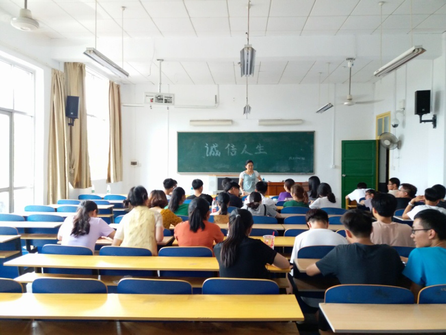2018年5月22日中午12点,由学办主任唐星星在电教105对大一、大二、大三的班长及心理委员下达以“诚信人生”为题的主题班会活动的任务。各班积极响应学校、学院的文件及会议精神,自由安排时间、地点、组织人员,按时按质按量完成主题班会。各班班长在班会上解读班会主题、目的及意义,并让班内每一个同学进行诚信考试的签名活动,让同学们更加深刻的了解这次班会的重要意义,加深影响。在主题班会中,各班围绕主题,有的班级邀请班主任主讲,有的班级以表演话剧的形式来告诫诚信重要性;有的班级先下载资料在班级QQ群中自主学习,然后在班会中谈感受;有的班级以正面、反面案例,论证诚信为人、诚实处事的重要性;有的班级从网上寻找视频资源倡导学生诚信为本等等。通过在各班学生中开展的主题班会,促进了同学们深入思考何为诚信,如何做一个诚信的人。