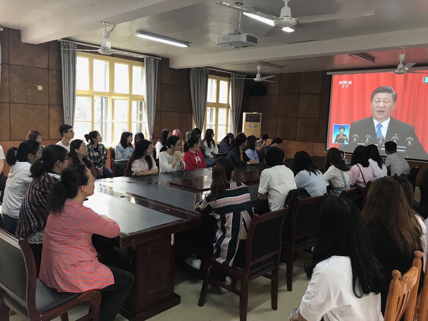 党总支部组织师生党员在电教楼会议室集中观看了纪念马克思诞辰200周年大会,并学习了习近平总书记在大会上发表的重要讲话。