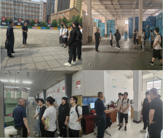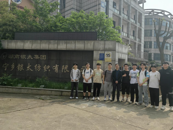 辅导员龚旭昱带领学院纺织工程专业2020级9名毕业生赴宁乡银太纺织有限公司实地参观,“上门”面试,打通就业服务“最后一公里”,“沉浸式”探企助推就业。