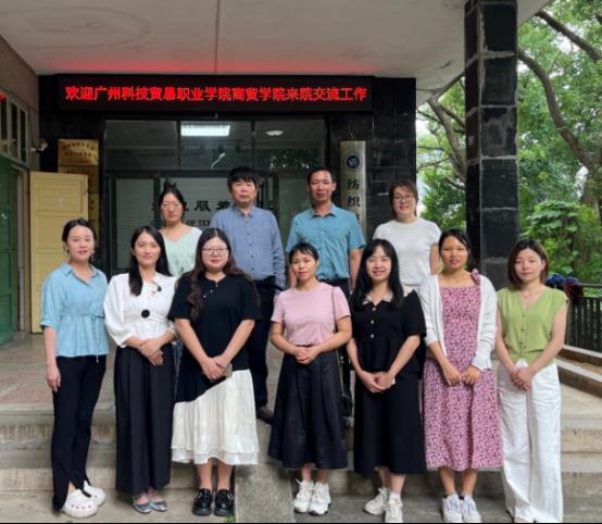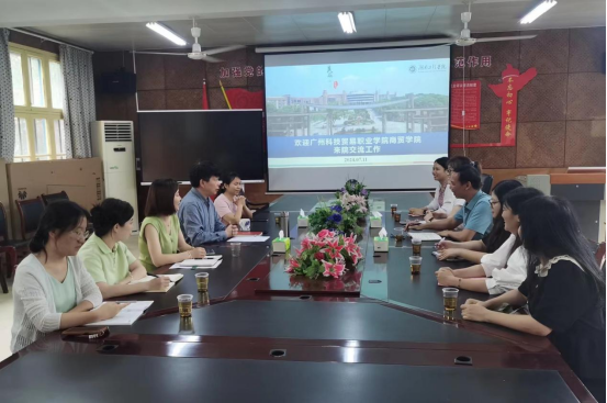 7月11日下午,广州科技贸易职业学院商贸学院党总支书记李建辉一行6人来我院交流学生工作。学院党委书记李爱国、副院长陈晓玲、相关教师和辅导员代表参与座谈交流。