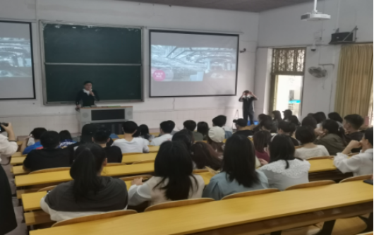 图为德永佳有限公司主讲人为我校大学生讲解公司概况