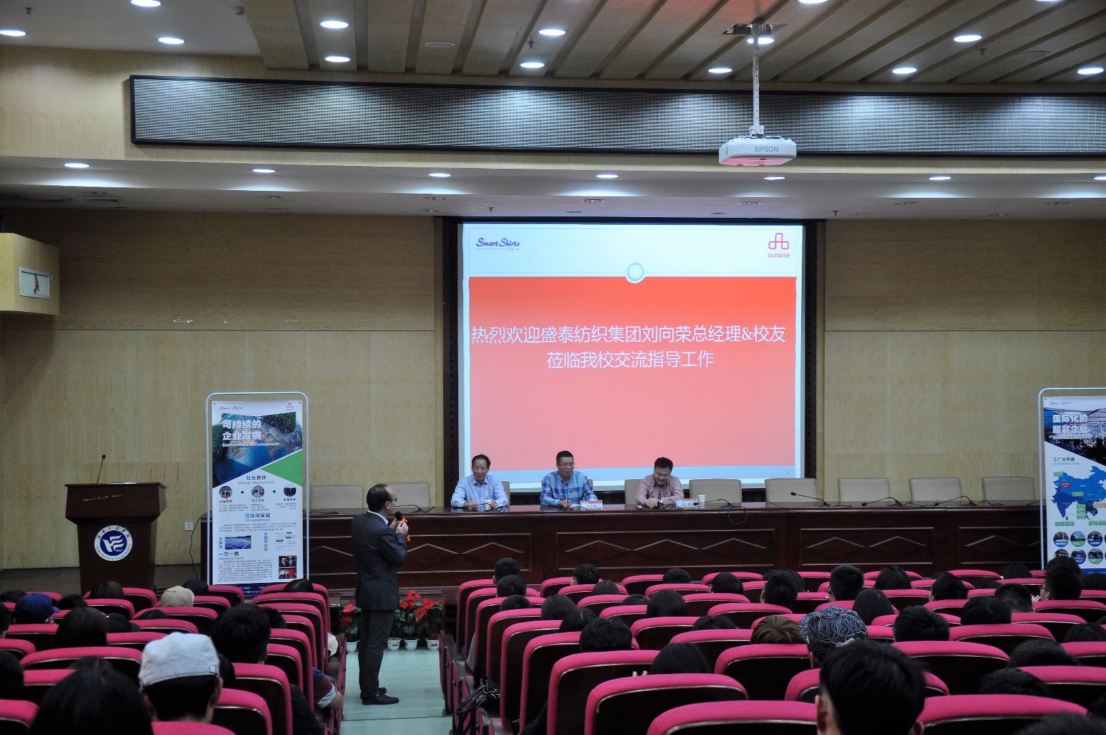 刘向荣先生首先为同学们讲解了十八届五中全会提出的“创新、协调、绿色、开放、共享”五大发展理念的内涵,阐述了为什么我国要实施创新驱动,以及中国从农业现代化、工业现代化、服务升级化、农村城镇化、城镇国际化的创新发展线路图,以及创新创业的优势和好处。他指出,相比国外,中国的纺织行业还存在很多不足之处。但机遇与挑战并存,在这种复杂而艰巨的就业形势下,他希望每个毕业生们有一个良好的心态。在选定好工作方向的同时,要抓住机会并脚踏实地的去努力。
