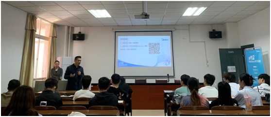 2020年11月18日下午2:00,芜湖美的厨卫电器制造有限公司在新校区G栋505开展招聘宣讲会,参加此次会议的有芜湖美的厨卫电器制造有限公司湖南区主要负责人和防止服装学院应届毕业生。