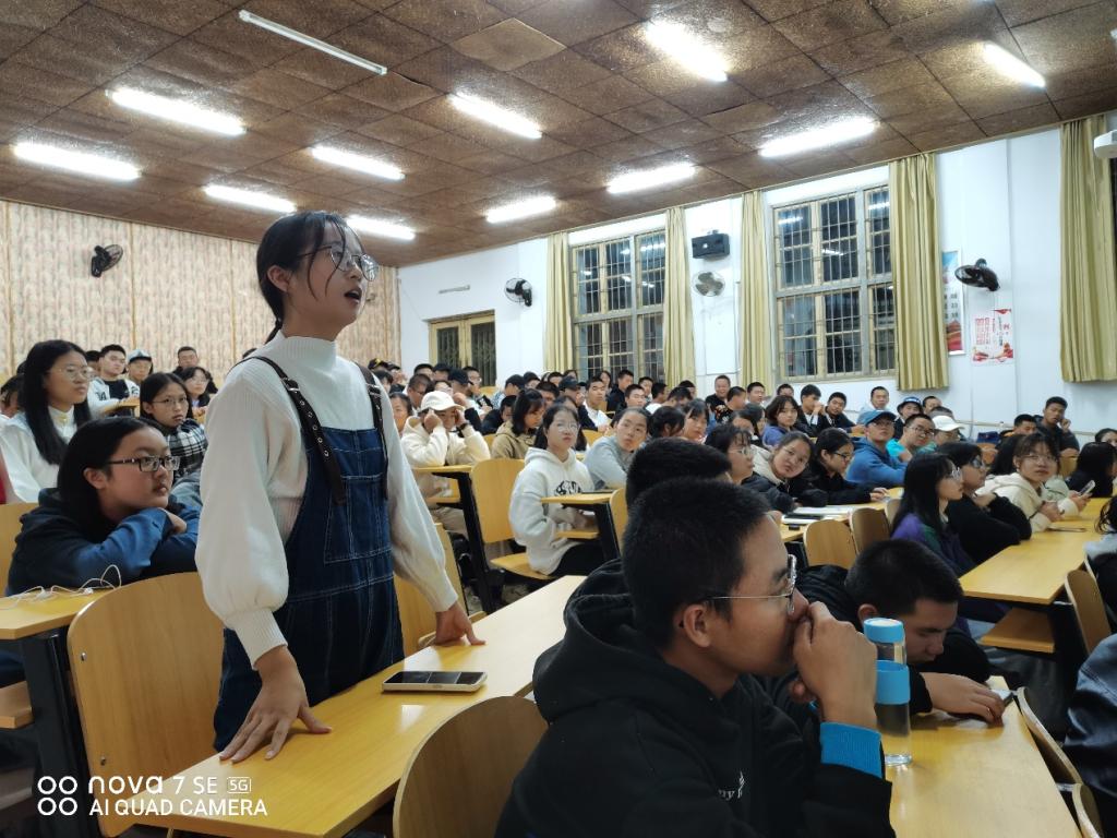 然后,主持人谭冬宜老师引用优秀校友的话“用你有的去换你需要的,先自问有什么,再去探索需要什么”鼓励同学们大学四年不断完善自己,培养自己。