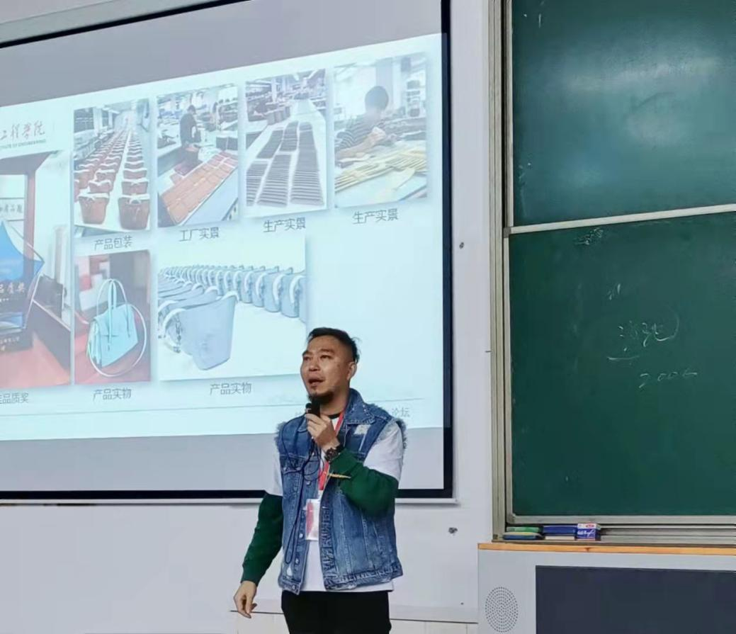 谭光玉是广州白云区丰格皮具场总经理。他真诚地和大家分享了他的大学生活经验,解答了学弟学妹在专业与就业方面的疑惑,为就业提供了可选择的方向,更是以自身的经历告诉我们要相信自己,勇于选择属于自己的人生轨迹。