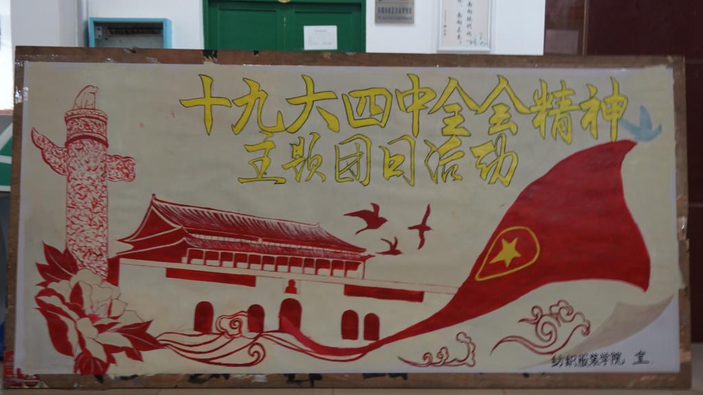 教职工党员及2018、2019级全体学生在红楼二楼举行“学习党的十九大四中全会精神”党、团日活动。此次活动目的是让老师同学们更加了解中国发展现状,体会中国发展速度之迅速,带领纺织服装院学生学习党的十九大四中全会精神,