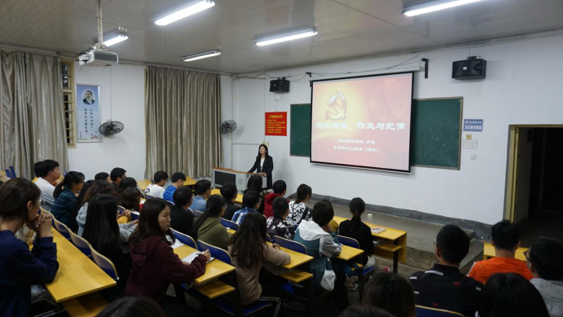 党总支副书记罗荃于10月10日晚上7点在电教101室对入党积极分子学员进行了“党的宗旨与作风”专题党课。