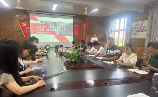 2023年6月27日下午,成人网站 教工党支部在电教楼201会议室开展6月“一月一课一片一实践”主题党日活动。教工支部支书记何斌围绕浙江“千万工程”、“浦江经验”经验案例学习主题带领全体教工党员进行学习。