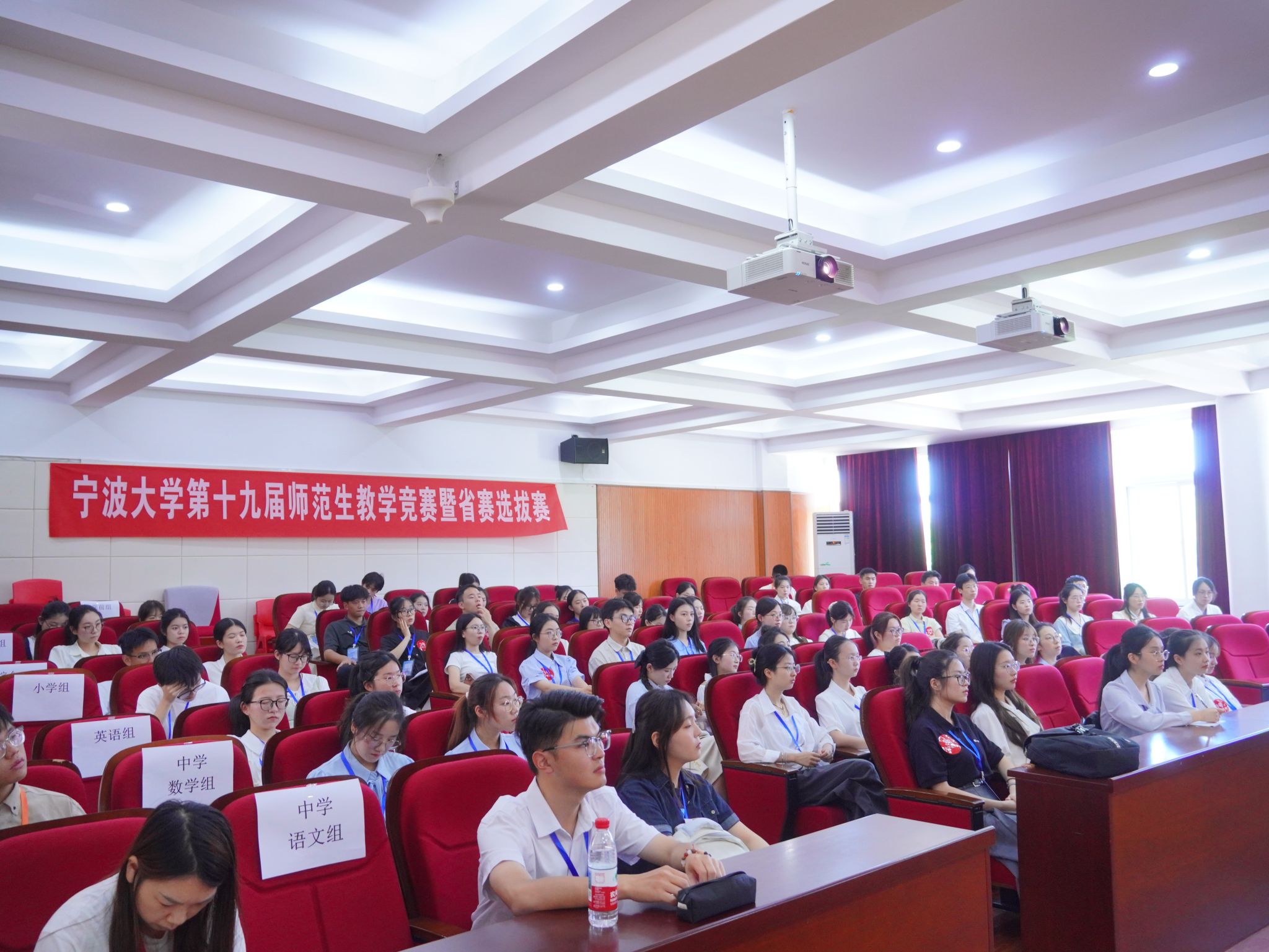 2025年7月5日,宁波大学第十九届师范生教学竞赛暨浙江省高等学校师范生教学竞赛选拔赛在西校区教育楼成功举办。本次竞赛吸引了全校各学院选拔出的75名优秀师范生参与,涵盖中学语文、中学数学、中学英语、小学教育、学前教育及综合一、二、三组共8个组别。