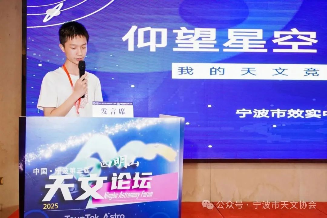 本次专门设立的青少年天文科普分论坛汇聚不一样的“星火”:闪耀国际的应磊、探索前沿的张家硕、勇于破题的于皓翔和从兴趣走向科研的林春博等学子生动诠释着青少年天文爱好者在天文科学教育“加法”上的创新探索。在更广大的范围内,甬城学子通过宁波市“科技新苗”计划等多种途径积极投身于天文实践观测、天文竞赛活动。他们以或互动或交流的形式积极参与到了天文科技领域的研讨与学习中。他们的智慧碰撞与实践经验,将为中国天文科普教育的未来发展提供强劲动力。
