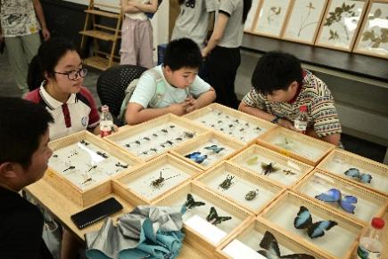 在宁波大学土木工程与地理环境学院的岩矿土壤植被水文等4个实验室,大家在指导老师的带领下走进地质陈列室、流域生态室、土壤动物室和植物标本室,通过触摸矿物标本、用显微镜观察土壤生物与淡水藻类等方式,近距离探索地球的地质历史、植物多样性和生态系统的奥秘。让孩子们惊喜的是,专业的大学教授亲自给他们上课。