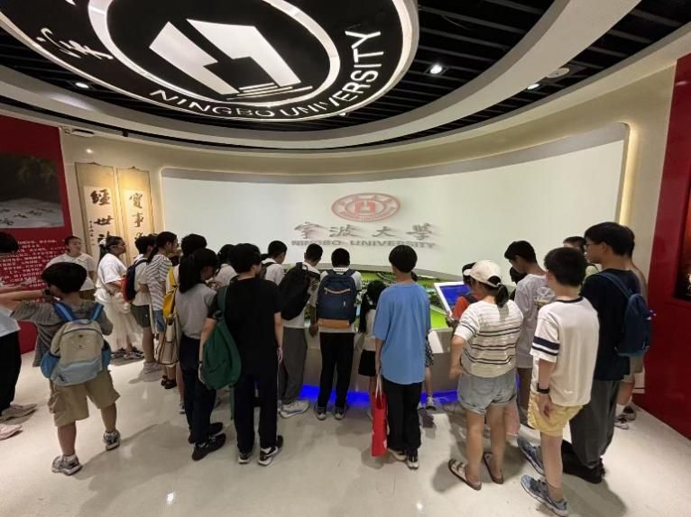 下午1点,同学们在午餐及短暂的休息之后,按照活动安排分为ABCD四组,依次交叉参观了宁波大学校史馆、物理科学探索中心展馆、潘天寿艺术教育思想馆和岩矿土壤植被水文等实验室。