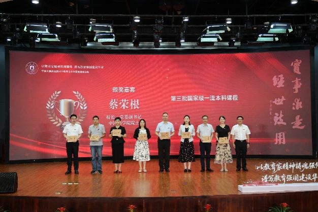 校领导为我院获批第三批国家级一流本科课程的周国平老师(右三)颁奖