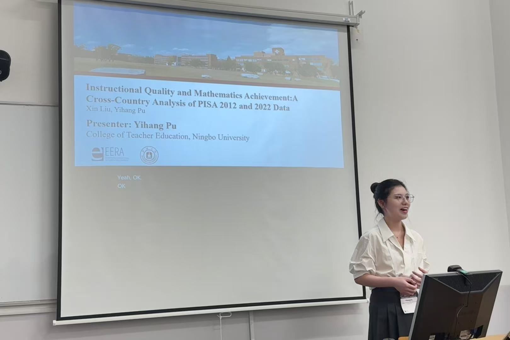 在 Network 09 “Assessment, Evaluation, Testing and Measurement”分会场,23级硕士研究生蒲艺航作题为《Instructional Quality and Mathematics Achievement: A Cross-Country Analysis of PISA 2012 and 2022 Data》的会议报告,该报告由我院刘鑫副教授指导硕士研究生蒲艺航完成。研究立足于当前国际教育界广泛关注的“提高教学质量、缩小学业差距”的背景,聚焦教学质量与学生数学成绩之间的关联,并特别纳入学生社会经济地位因素,以探讨教学质量在促进教育公平中的作用机制。研究采用“教育有效性动态模型”作为理论框架,利用 2012 年和 2022 年两轮国际学生评估项目(PISA)数据,对十个欧洲国家进行了跨时段与跨区域的比较分析,近16万名学生样本涵盖瑞典、挪威、芬兰和丹麦四个北欧国家,比利时、德国、法国和荷兰四个西欧国家,以及葡萄牙和西班牙两个南欧国家。两轮分析结果均表明,在这十个国家中,数学教师支持与课堂纪律氛围作为教学质量的重要组成,不仅持续促进整体学业表现,更显著惠及社会经济地位较低的学生,起到缩小成绩差距的作用。该研究从跨国视角凸显了教学质量在促进教育公平中的价值,为进一步揭示其在社会经济背景与成绩路径中可能发挥的中介机制提供了实证依据,对不同国家制定针对性的教育政策具有参考意义。