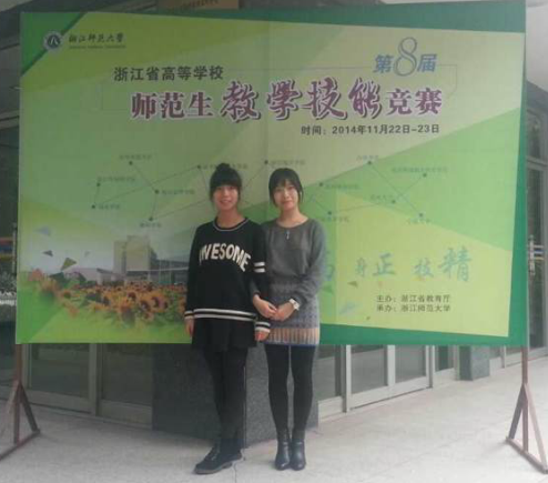 11月22日-23日,浙江省高等学校第八届师范生教学技能竞赛在浙师大落下帷幕。我院的8名选手分别参加了语文、数学、外语和学前组的竞赛。共获得二等奖2项,三等奖2项的成绩,其中基础教育系的叶媚同学获得语文组二等奖(指导老师:洪雅敏),学前系的傅雯晴同学获得学前组二等奖(指导老师:汪超),基础教育系的王璐同学获得数学组三等奖(指导老师:沈丹丹、魏亚琴),英语系的罗婧懿同学获得英语组三等奖(指导老师:袁恺杰)。
