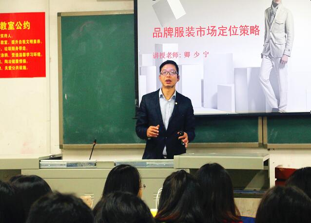 本堂课的主要内容为“品牌服装市场定位策略”。 卿少宁老师首先以麦当劳和肯德基的案例引入,充分引起学生兴趣,通过产生的集聚效应,导出品牌服装市场定位对一个企业有着重大的意义和价值。随后,卿老师用大家耳熟能详的品牌及其品牌文化给同学们介绍了品牌定位的“顺应原则”、“对立原则”、“空位原则”和“差异原则”,要合理的运用这定位原则才能是企业立与不败之地。后期阶段,卿少宁老师将在品牌服装企业专职一年的设计师岗位的实际市场经验针对曾经企业工作中所接触的几个经典男装品牌进行案例分析,通过理论与实际结合的授课方式剖析了企业的内部战略定位策略和品牌服装定位的具体内容。