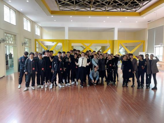 形体房内,如期举行了2001级表演班《服装表演(1)》课程的结课考试。同学们8:00到达教室,开始彩排复习。考试要求学生统一化妆、发型及着装,按学号顺序分配号码牌,全程录音录像,保证最终成绩的公平公正公开。