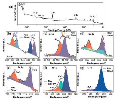 Fig.2 XPS spectra of the obtained (La0.8Sr0.2)0.95Mn0.5Fe0.5O3