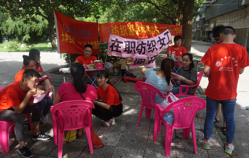 积极响应校团委“三下乡”社会实践活动号召,开展“寻湘纺足迹,觅纺织女工”社会调研,活动得到了湘潭市妇联、纺城社区等大力支持。