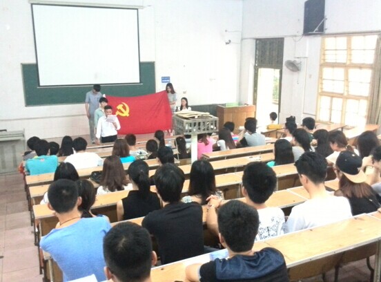 我院党支部于5月30日中午12点在电教105举办了入党宣誓大会,出席宣誓仪式的有院党总支副书记江灏、学办主任唐星星,学办老师罗荃以及学生支部支委、46位预备党员。大会由唐星星老师主持。