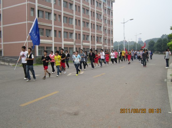 党支部和学生会联手组织了“喜迎校庆,‘低碳生活 从我做起’”的环校晨跑活动。此次活动旨在呼吁同学们身体力行,从身边小事做起,回归简朴、少电的生活方式,养成“低碳”生活习惯,努力创造绿色环保的校园环境。