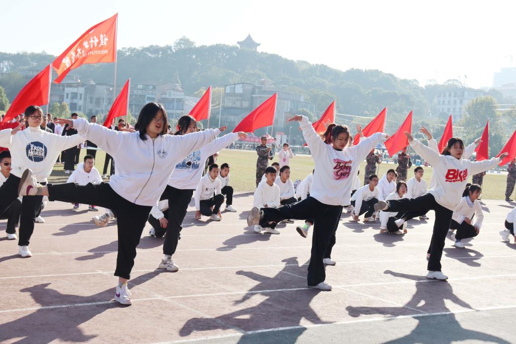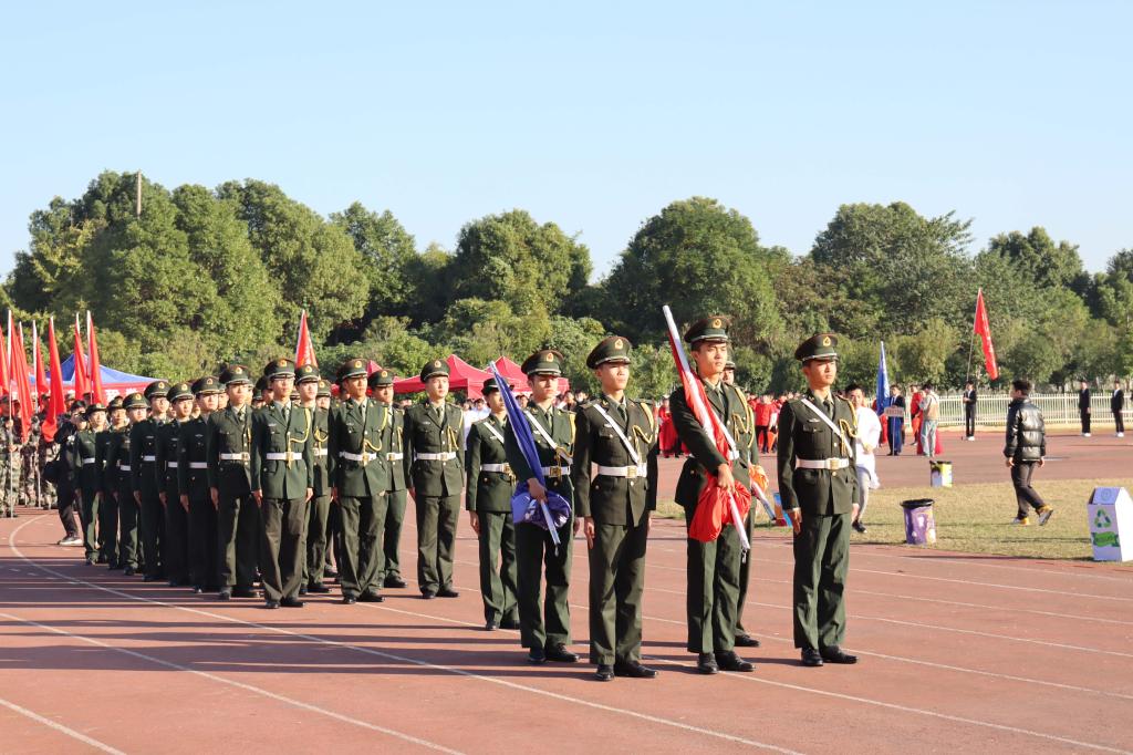 体育馆正式举行。开幕式上,护旗手们高举国旗,五星红旗伴随着国歌升上旗杆,各院方阵一一入场,他们昂首挺胸,英姿飒爽,迸发着青春活力,他们歌声飞扬,舞步轻盈,展现着青春风采。