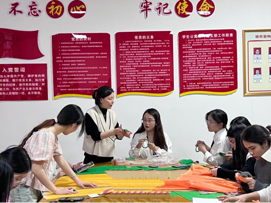 活动中,师生们围坐在一起,用皱纹纸精心制作菊花。每一片花瓣,每一道折痕,都凝聚着对烈士的缅怀和感恩之情。袁微微说:“通过手作菊花,我们不仅锻炼了学生的动手能力,更重要的是,通过这个过程,让学生们体会到对革命先烈的感恩之心,激励学生们励志奋发。”