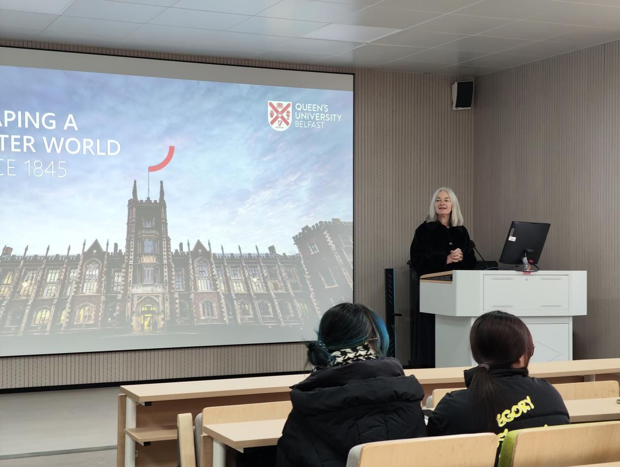 在这次宣讲会上,Wylie教授向同学们介绍了英国女王大学的悠久历史和卓越学术成就,以及当地美丽的自然风光、低消费水平和高质量生活。随后,她详细阐述了暑期学校的课程设置、学术资源以及文化交流机会,旨在通过项目式学习提升学生的全球视野和专业技能。课程由世界领先的学者设计,围绕全球研究主题展开。学生将有机会深入研究自己选择的领域,并在团队项目中模拟专业实践的工作环境。此外,项目还提供职业发展和创新创业的额外课程,以增强学生的就业竞争力。