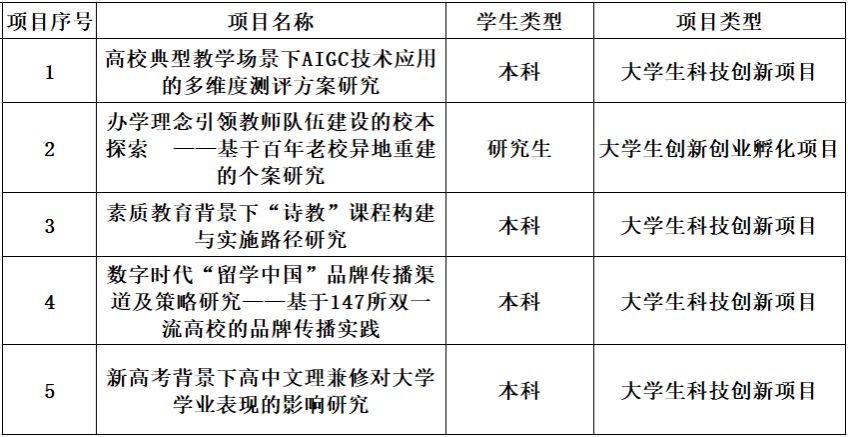 经学生申报、指导教师推荐,学院组织校外专家评审,最终拟推荐以下五个项目为教师成人网站2025年浙江省大学生科技创新活动计划(新苗人才计划)项目拟立项项目,报校团委。现予以公示: